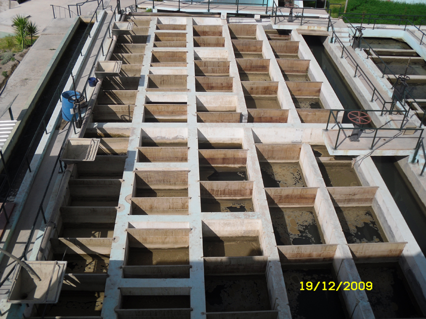 Mezclador rápido hidráulico del tipo rampa, floculador hidráulico de pantallas de flujo vertical, decantadores laminares con extracción hidráulica de lodos, filtros rápidos de arena y antracita de tasa declinante autolavables y sistema de cloración.