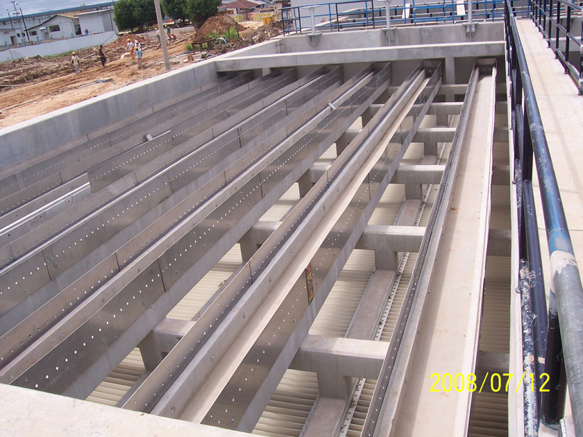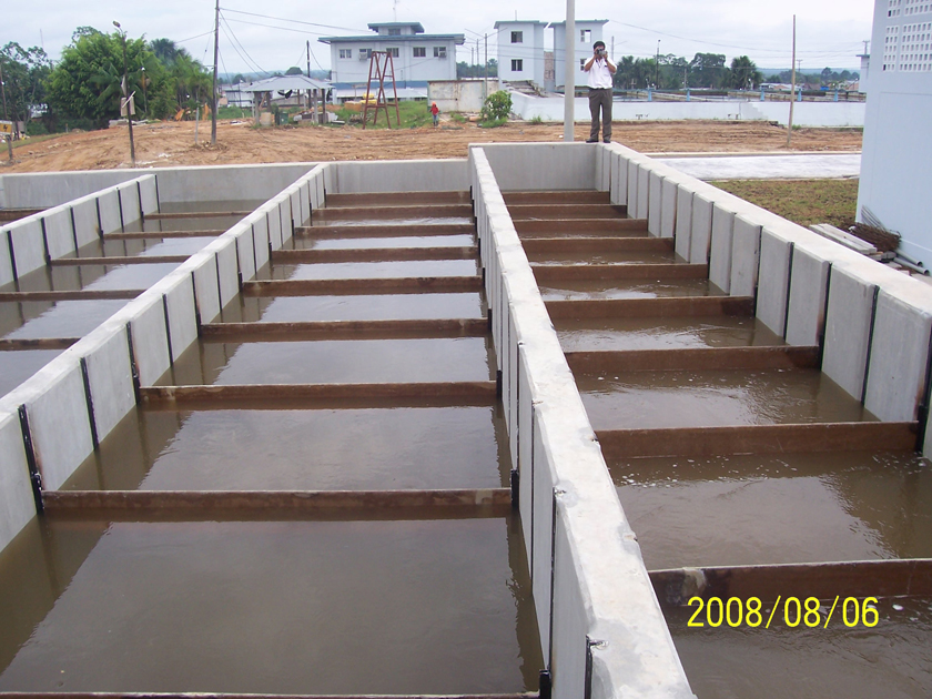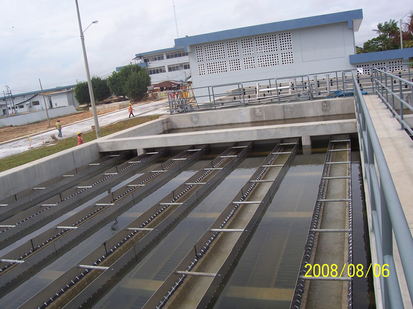 Componentes: Bombeo de agua cruda, mezclador rápido hidráulico del tipo rampa, floculador hidráulico de pantallas de flujo vertical, decantadores laminares con extracción hidráulica de lodos, filtros rápidos de arena de tasa constante y sistema de cloración.